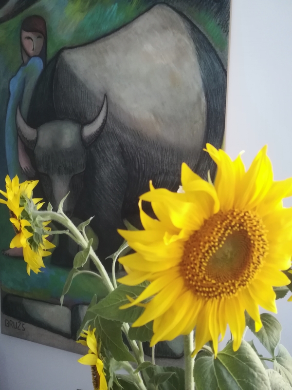 L’image ci-dessus est de D.M. Il s’agit d’une de ces pelleteuses utiles à nettoyer les fonds de marais ostréicoles, les claires : métaphore. L’image précédente associe un tableau de Tania Brûsz à quelques fleurs qu’un autre peintre a souvent pris pour motif, rencontre due au hasard de la vie, ou dimanche de la vie, platonicien encore : métonymie. L’image qui introduit le propos de Jan de Weck est une photographie prise par C*** E*** ces jours derniers, au coucher du soleil, passe des deux sœurs, sur le littoral ouest de l’île d’Oléron : image.